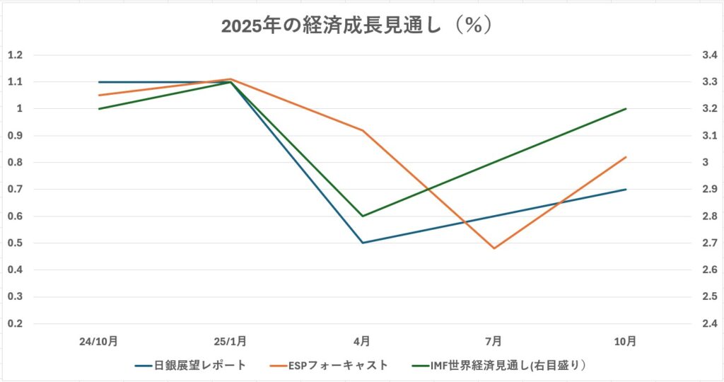 (図表1)25年度経済成長率見通しの修正状況(%)